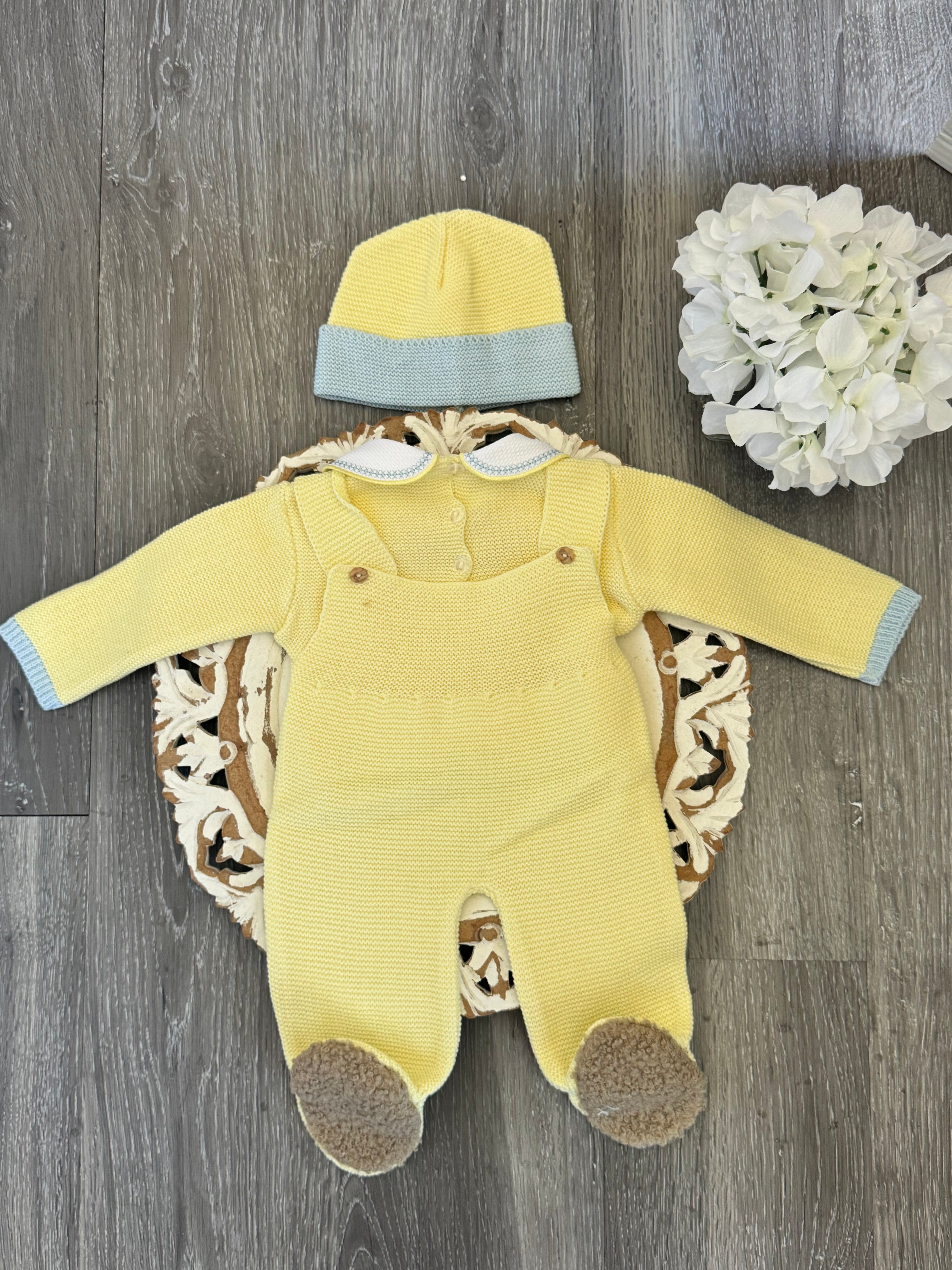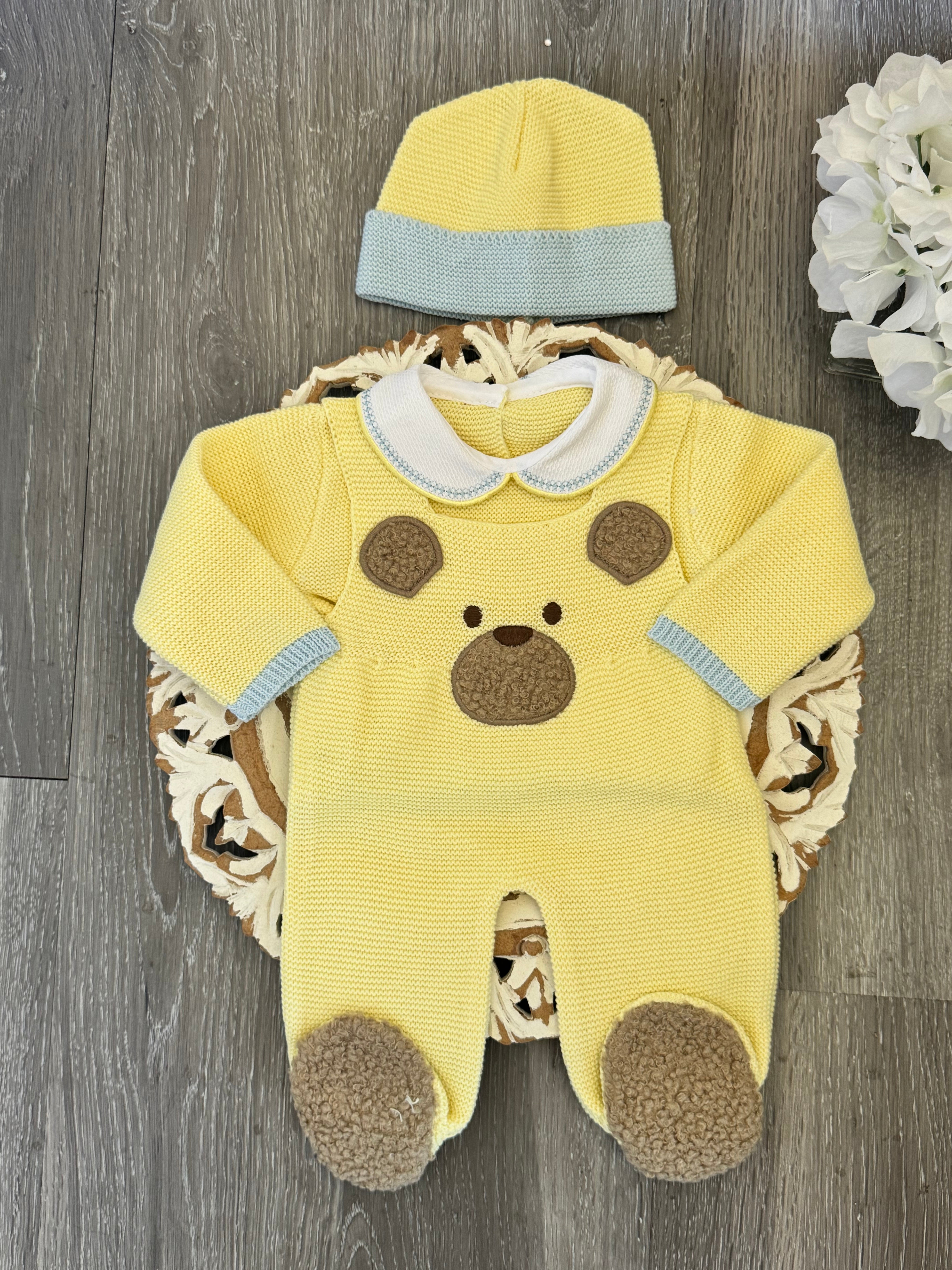 Bear Footie Knit Romper In Yellow and Sky Blue