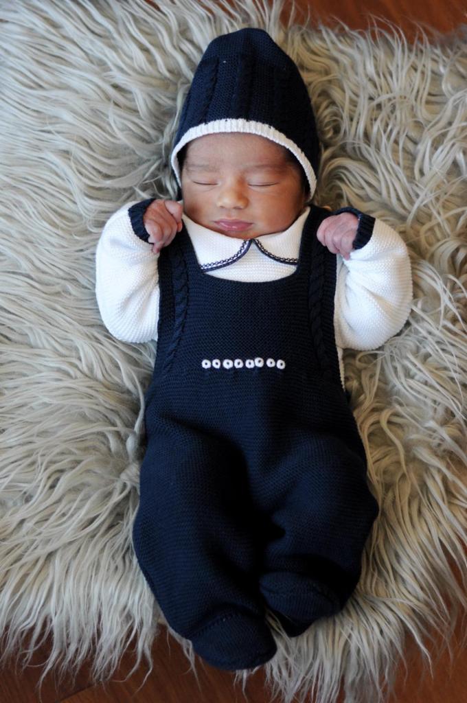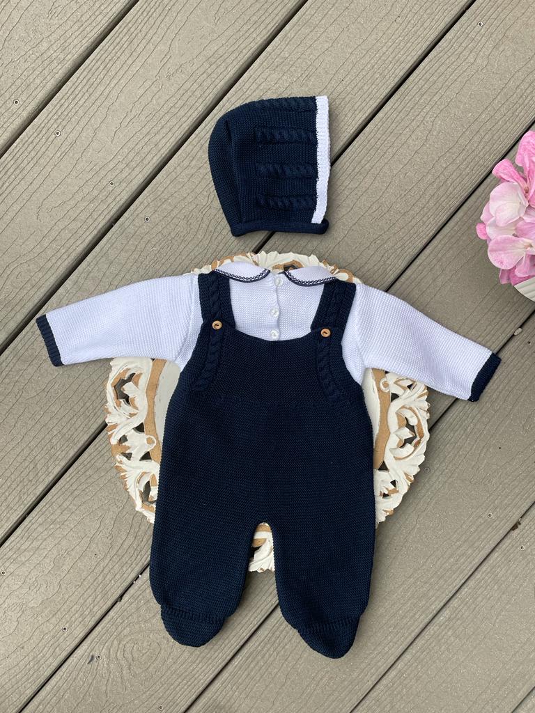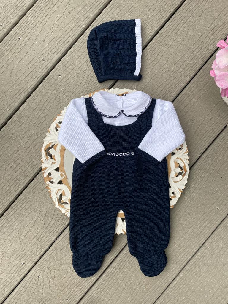 Cable Knit Suspenders Style Baby Knit Romper in Navy Blue