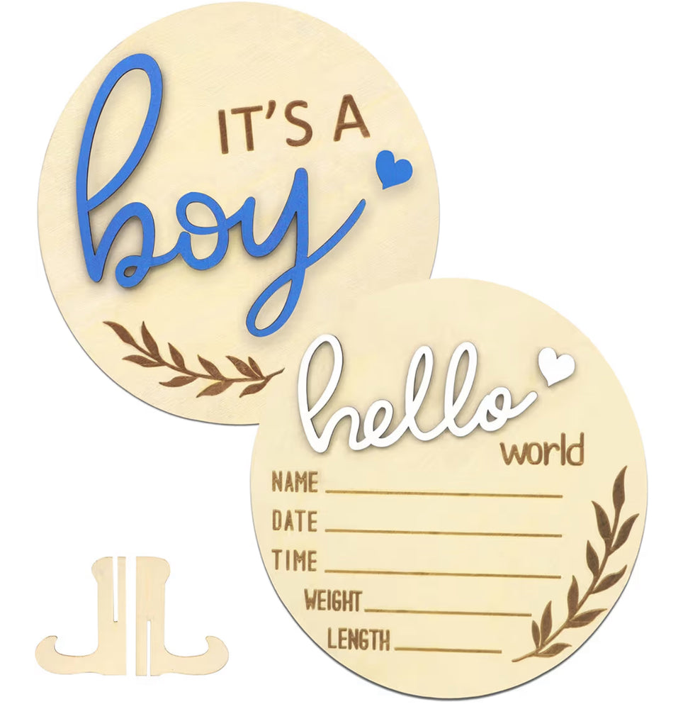 Hello World Baby Sign Announcement | Birth Stats - Boy