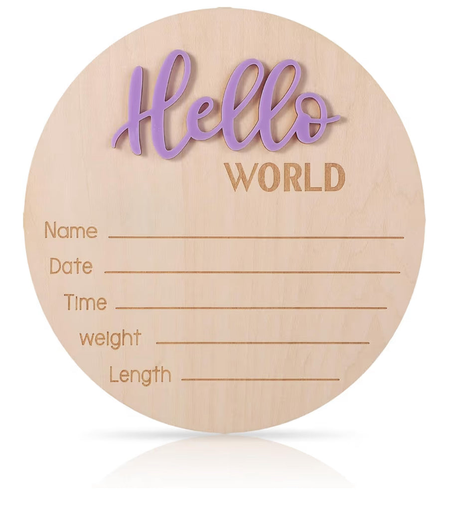 Hello World Baby Sign Announcement | Birth Stats - Unisex