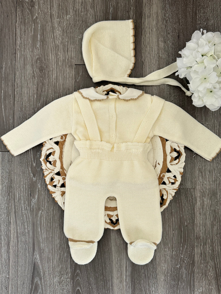 Baby Belle Bow Knit Romper Set in Ivory and Ochre