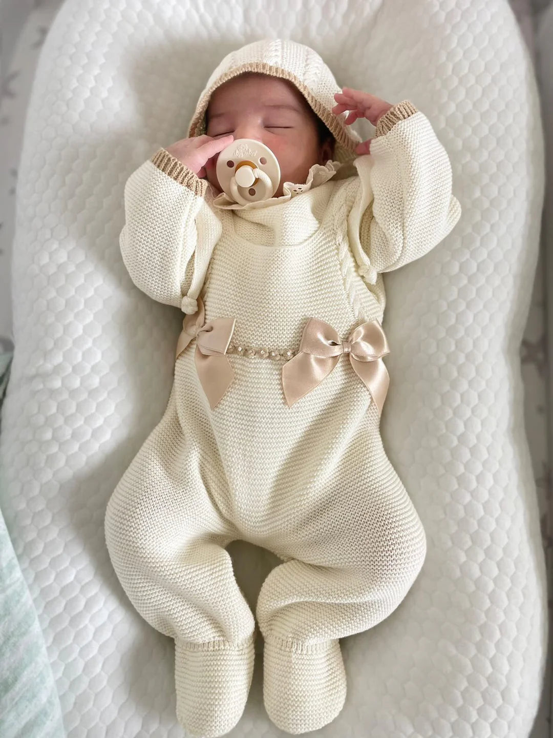 A charming keepsake for baby’s first moments. Featuring our signature cable knit suspenders with double bows — the perfect blend of elegance and sweetness. Soft, cozy, and beautifully presented in our Gris Pétalo gift box, ready to gift and adore from day one.