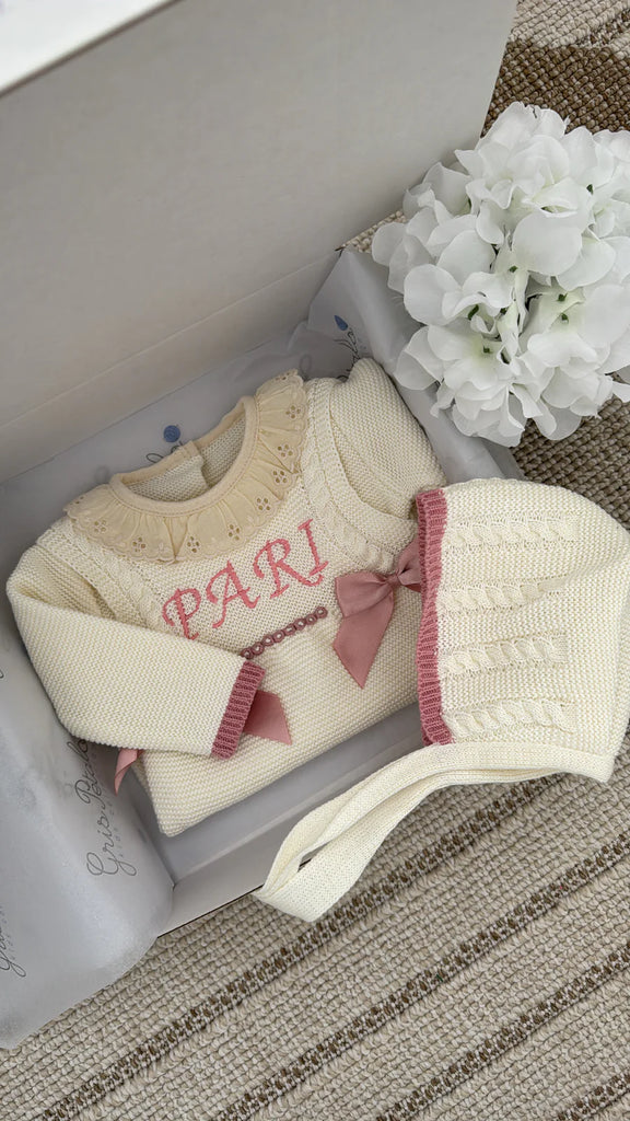 A charming keepsake for baby’s first moments. Featuring our signature cable knit suspenders with double bows — the perfect blend of elegance and sweetness. Soft, cozy, and beautifully presented in our Gris Petalo gift box, ready to gift and adore from day one.