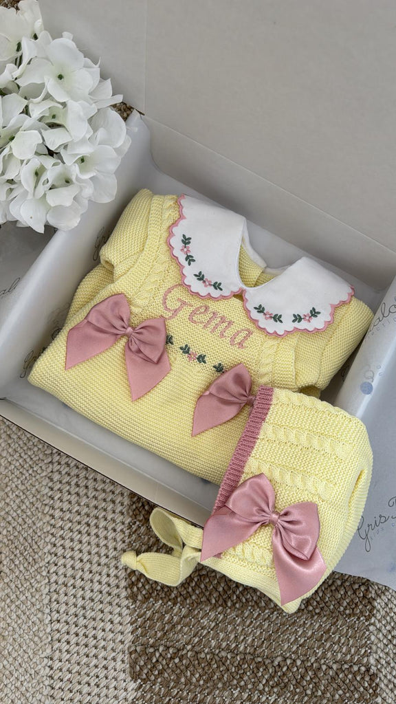 Floral Print Scallop Collar Knit Romper in Yellow and Old Pink