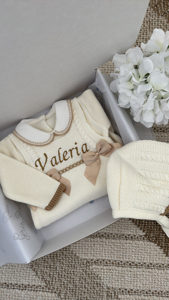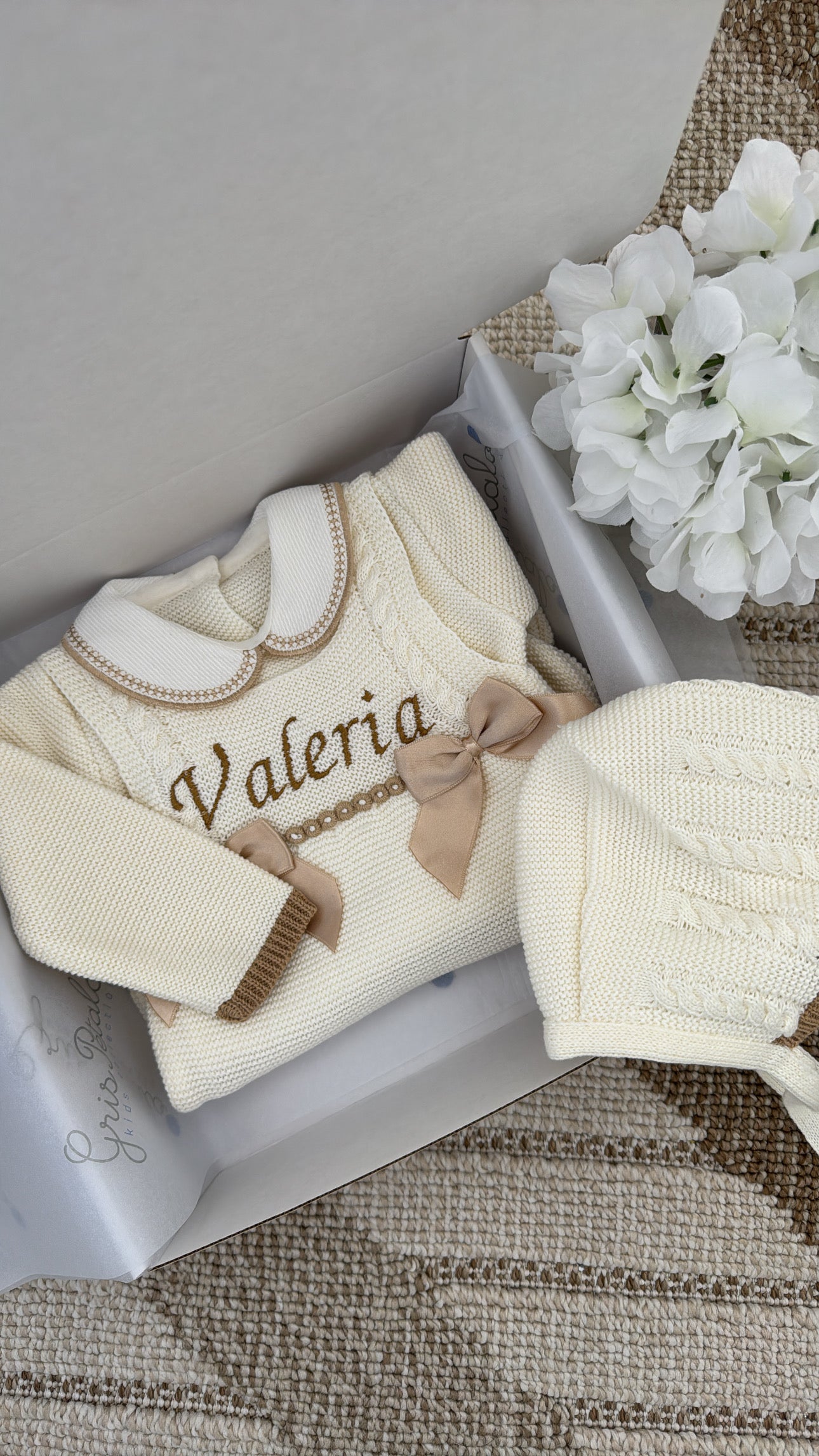 - Two Piece Knit outfit with peter pan collar and double satin bow