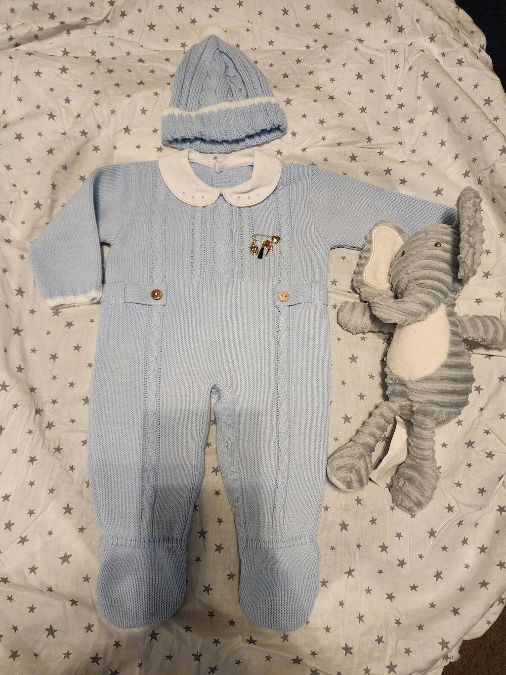 - Two Piece Knit outfit with peter pan collar and wooden buttons on waist
